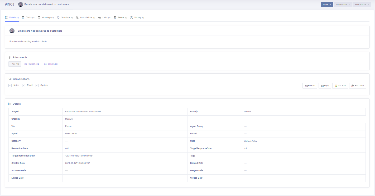 Alarmlar, etkileşimler ve e-postalar otomatik olarak probleme dönüştürülür.