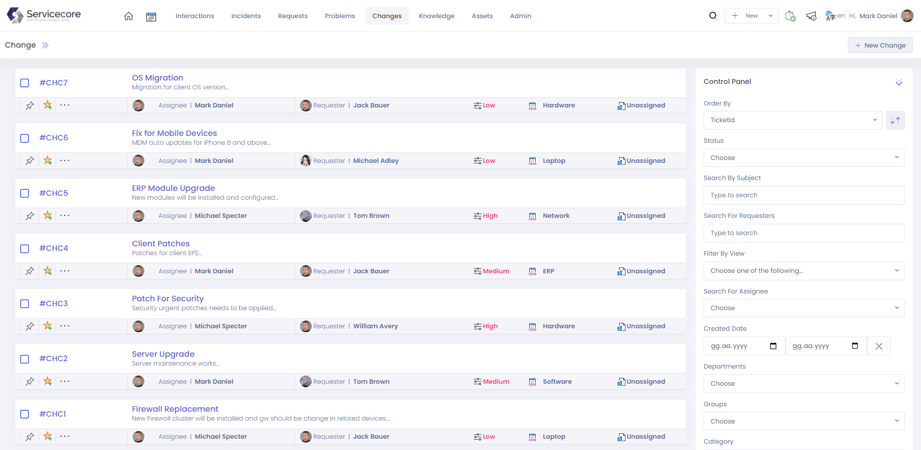 Change Management will be very easy for you to manage with our easy to use management panels.