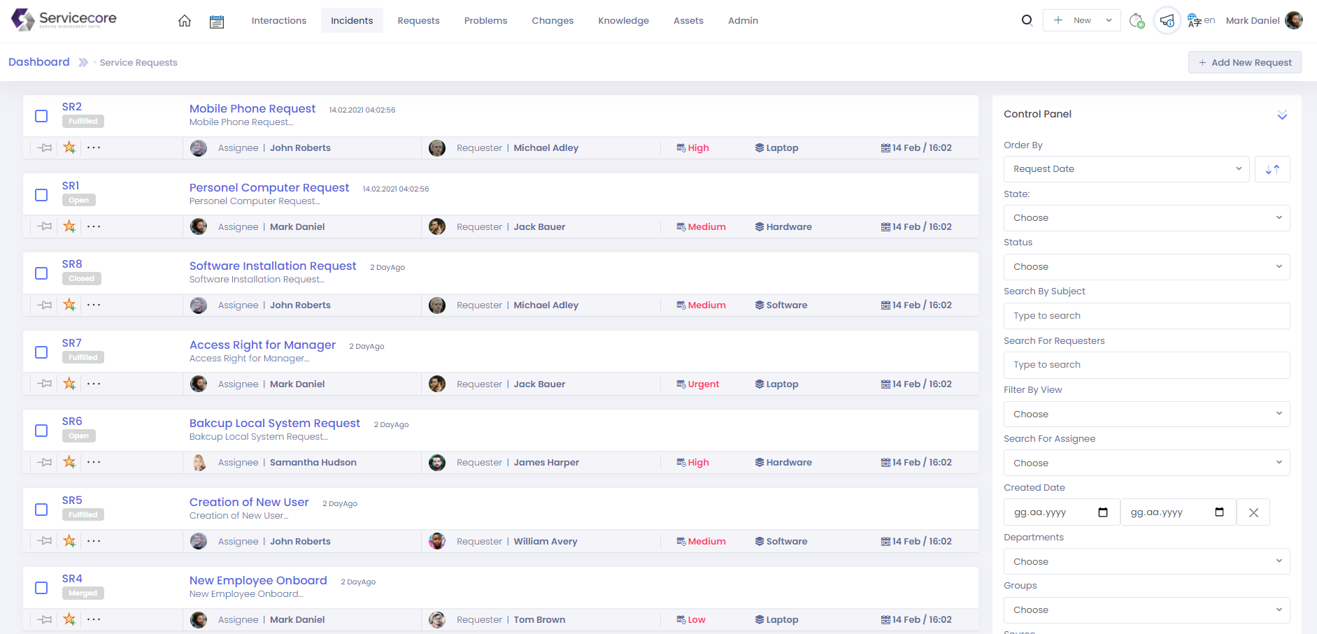 Servicecore modern and intuitive UI requires minimal to no training, and is customizable to IT and non-IT needs. Seamless request management experience designed by ITSM experts for IT experts.