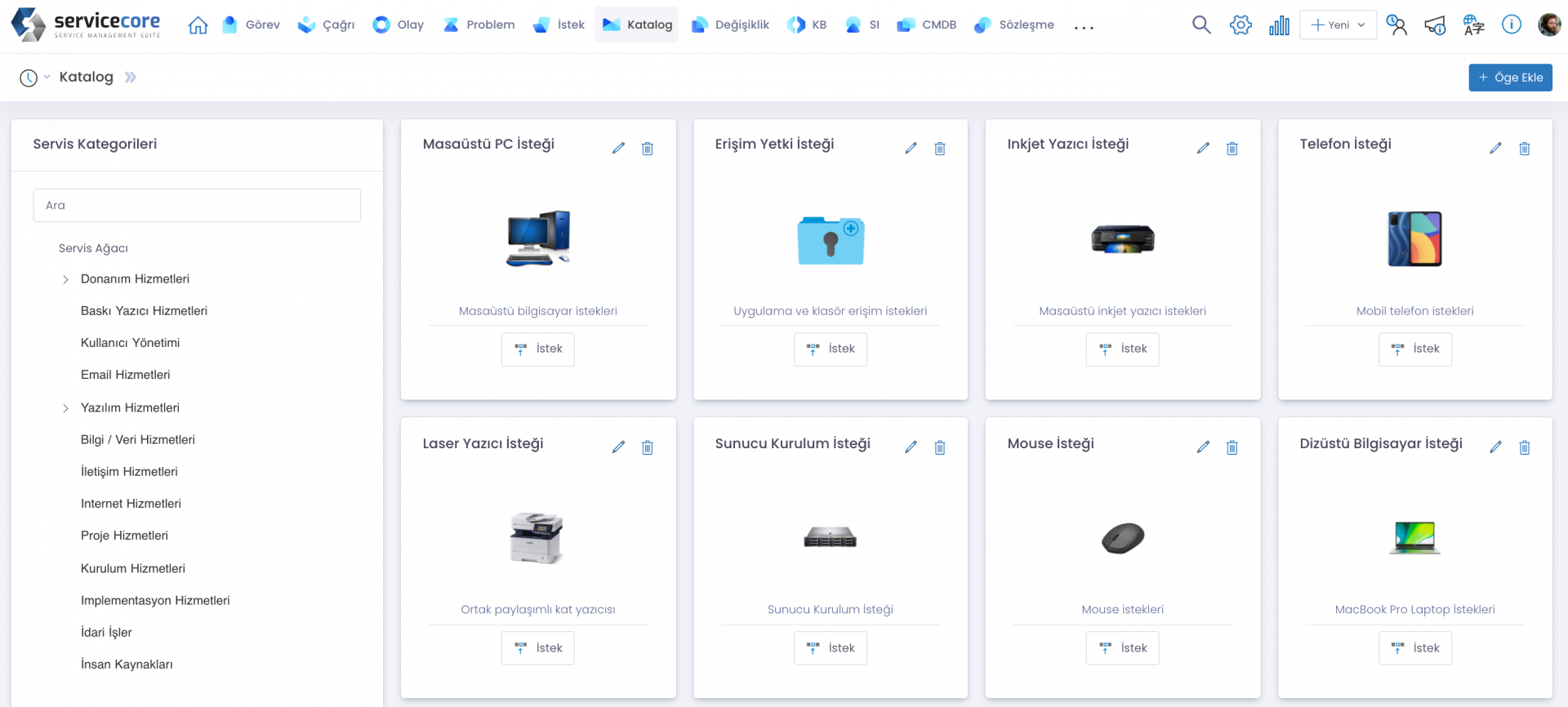 Bu modern katalog yönetim modülü ile hem servis hem de teknik katalogların yönetimi kolaydır.