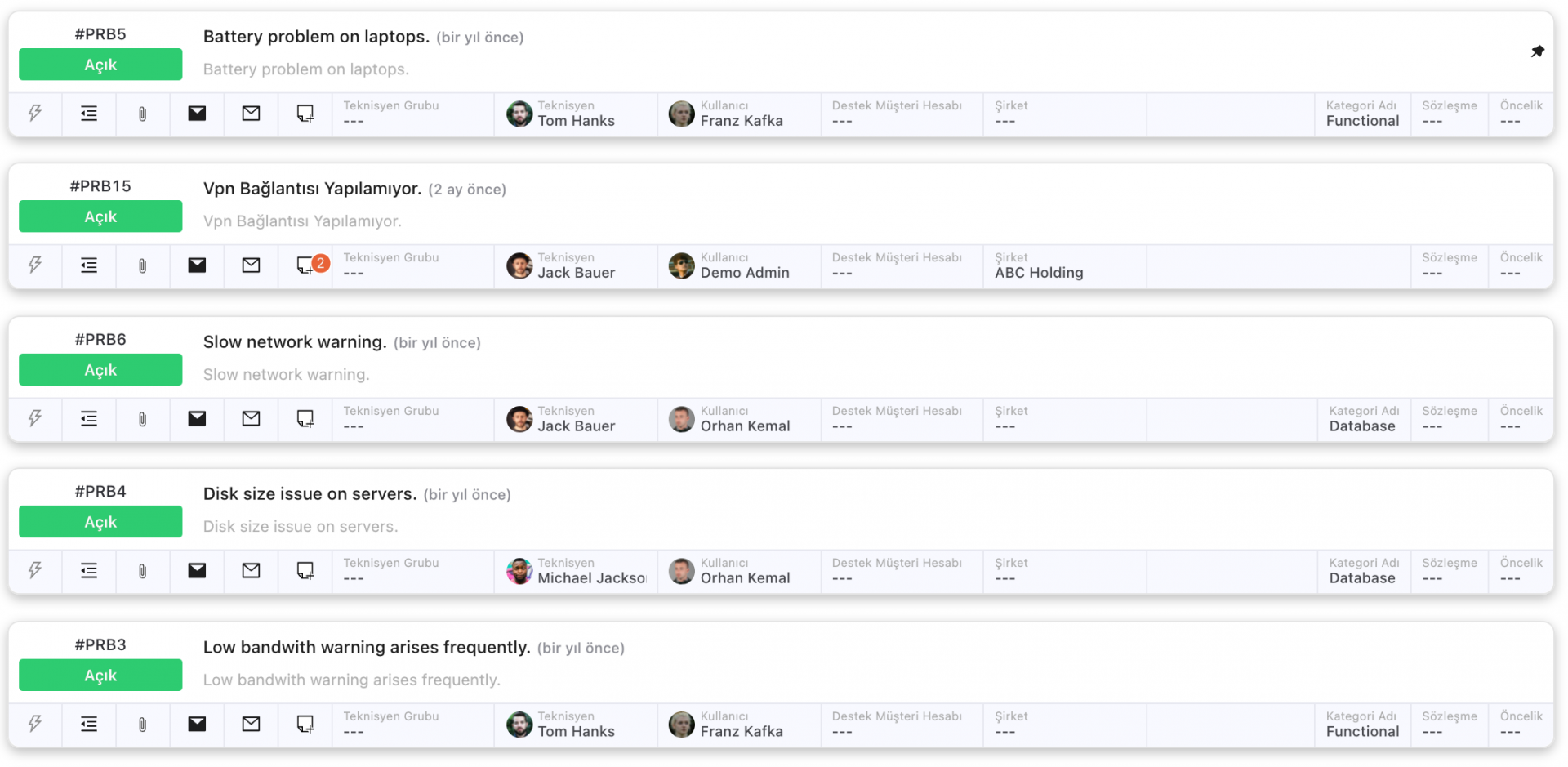 Alarm, Etkileşim, Problem, Değişiklik ve Varlık modülleriyle doğal entegrasyon.