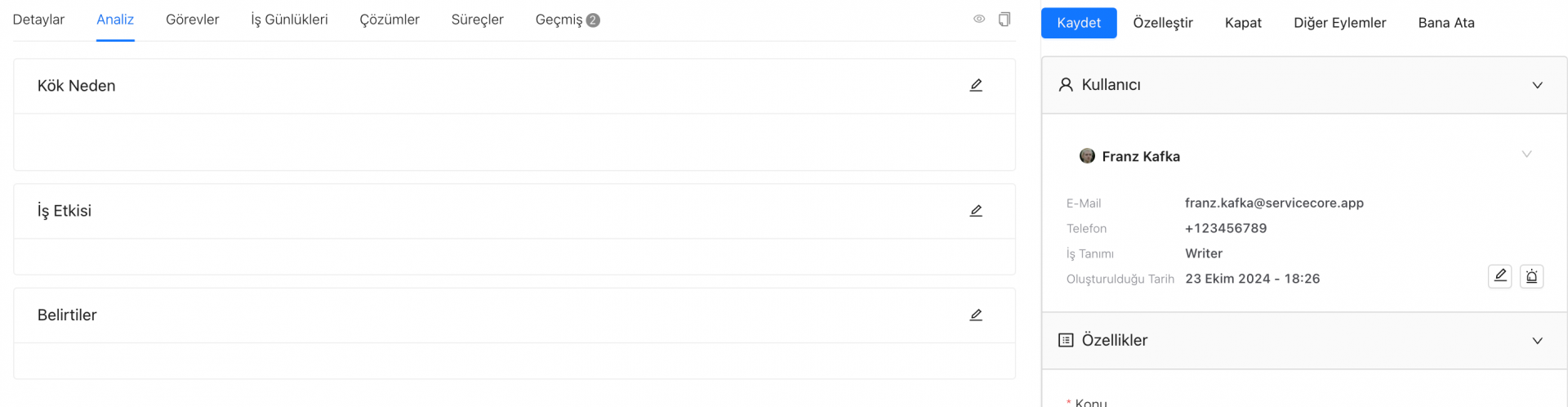Servicecore Problem Management modülü, olayların tekrar etmesini engellemek ve hizmet sürekliliğini sağlamak için tasarlanmıştır. ITIL4 uyumlu yapısıyla hem reaktif hem de proaktif problem yönetimini destekler.