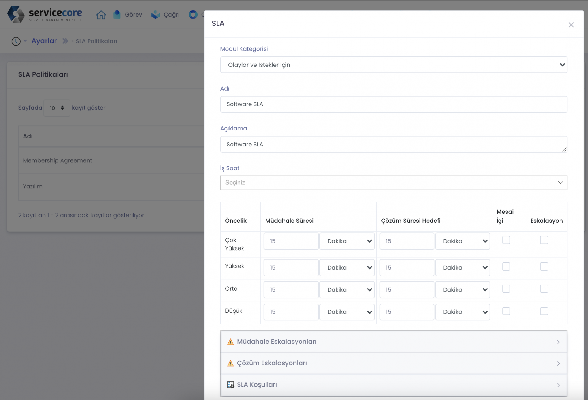 Kolay SLA girişleri ile hem olay hem de istekler için doğru sıralama ve zamanında müdahale imkanı sağlanmaktadır.